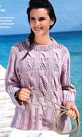 - # 13 Quer gestrickter Ajourpulli in Lila
