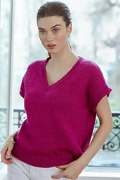 - 178-02 Pull à col V et manches fantaisies