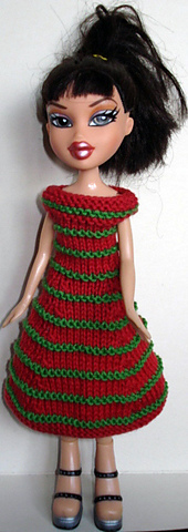- Bratz #B235 Dark Red Dress with Green Stripes