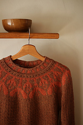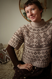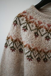 My designs are also very much inspired by nature. I love floral colourwork patterns growing down the yokes, soft warm colours and delicate textures, feminine silhouettes and smart little details.