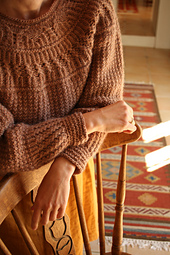 My designs are also very much inspired by nature. I love floral colourwork patterns growing down the yokes, soft warm colours and delicate textures, feminine silhouettes and smart little details.