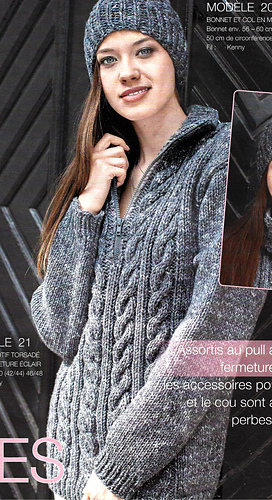 # 21 Pull motif torsadé avec fermeture éclair