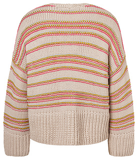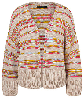 Krause Maschenreihen verpassen diesem Jäckchen Struktur und einen Hauch Farbe. Chic finden wir auch den sahnigen Nougat-Ton und die breiten Halbpatent-Bündchen.