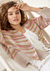 Lana Grossa Cashseta (40% Modal, 30% Polyamid, 15% Kaschmir, 15% Seide, Lauflänge 100 m/50 g), 450 (500 – 550 – 600) g Graubeige (Fb 6), 100 g Himbeer (Fb 33), 100 g helles Graublau (Fb 42) und 100 g Curry (Fb 44), Stricknadeln Nr. 6,5 und 7,5.