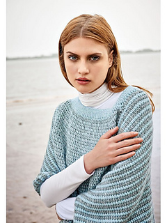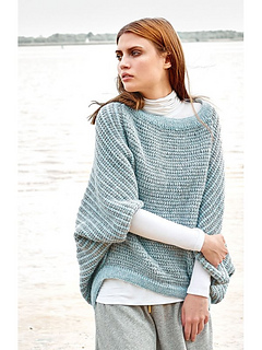 Lana Grossa Alta Moda Alpaca (90 % Alpaka, 5 % Schurwolle, 5 % Polyamid, Lauflänge 140 m/50 g) 250 (300-350) g Hellblau meliert (Fb 47) und 200 (250-300) g Hellgrau meliert (Fb 12); tunesische Häkelnadel Nr. 8, eine 60 cm lange Rundstricknadel Nr. 6, Häkelnadel Nr. 6
