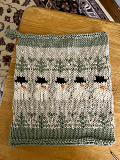 Knitted pot-holders with Nordic pattern, snowmen and Christmas trees in DROPS Cotton Light. Theme: Christmas.