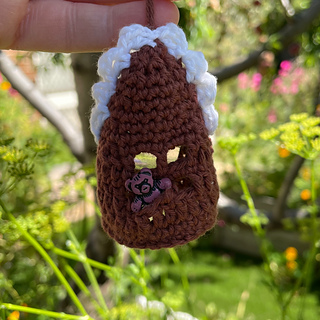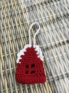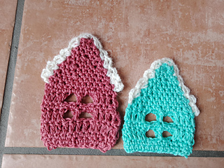 Crocheted gingerbread house / Christmas decoration in DROPS Safran. Piece is worked bottom up. Theme: Christmas.