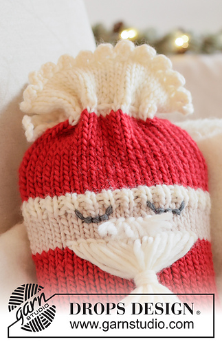 Knitted Santa cover for a hot water bottle in DROPS Snow. The piece is worked bottom up. Theme: Christmas.
