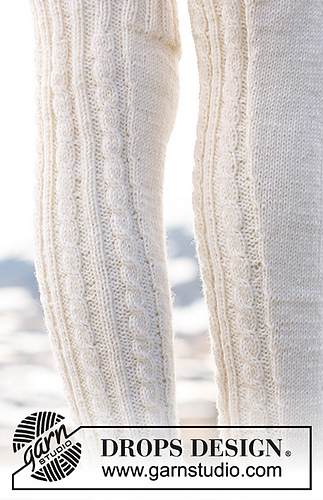 Knitted yoga socks/leg-warmers with cables in DROPS Karisma.