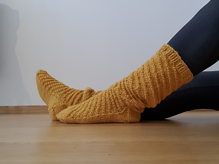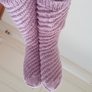 Knitted DROPS socks with rib and spiral pattern in “Nepal”.