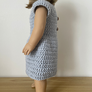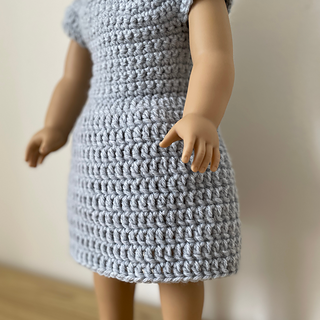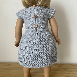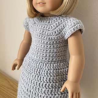This is a simple but durable dress that can be quickly crocheted for your American Girl doll’s wardrobe. The dress begins crocheted in rows and then transitions to rounds. It is worked from the top down and crocheted as one piece with no seaming required.