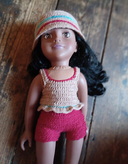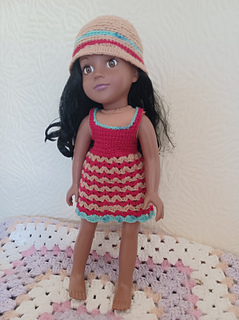 I’ve added to my collection a lovely new Designafriend 18” doll. This is my first crochet pattern which includes a top, shorts, hat and dress in 4ply yarn, using basic crochet stitches so suitable for beginners.