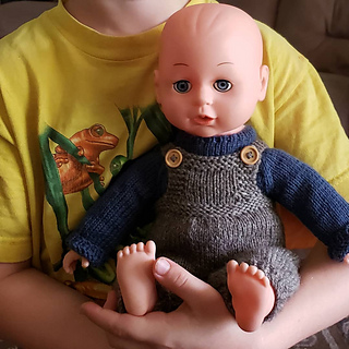 The pants are knit from the knee up with a shaped bib at front and back. As Annabell is a ‘sitting down’ doll a lot of shaping is required for a good fit at the back. However, I have given suggestions if your doll is not a ‘sitting down’ type which doesn’t need so much shaping
