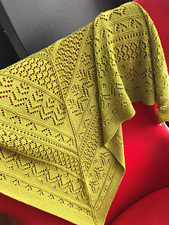 Knitted shawl in DROPS BabyAlpaca Silk. The piece is worked top down with lace pattern and garter stitch.