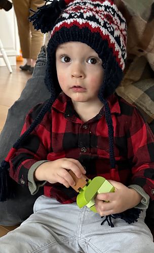 I have recreated Winter Games hats in the past and was asked if I planned on doing this year’s version. I decided to accept the challenge! The hat itself was pretty straight forward, but the earflaps and tassels are a bit fussy. However, they make the hat. I think it turned out pretty close to the original.