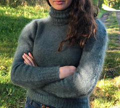 Knitted jumper in 2 strands DROPS Kid-Silk. The piece is worked top down, with saddle shoulders, puffed sleeves and high neck. Sizes S - XXXL.; Pattern no ks-182