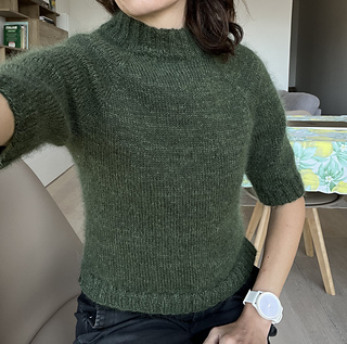 Knitted jumper in DROPS Flora and DROPS Kid-Silk. The piece is worked top down in stocking stitch with raglan and short sleeves. Sizes S - XXXL.