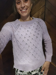 Knitted jumper in DROPS Air or DROPS Paris. The piece is worked top down with double neck, raglan, lace pattern and split in sides. Sizes S - XXXL.