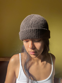 Knitted hat in DROPS Karisma. Piece is knitted bottom up with double folding edge.