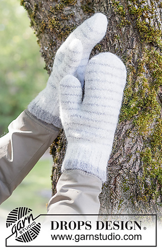 Knitted and felted mittens for men with stripes in DROPS Lima.
