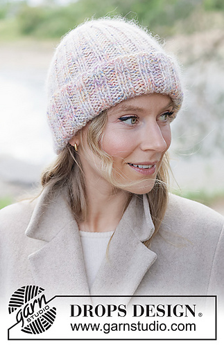 Knitted hat in 1 strand DROPS Fiesta and 2 strands DROPS Kid silk. The piece is worked bottom up.
