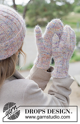 Knitted mittens in 1 strand DROPS Fiesta and 2 strands DROPS Kid-Silk.