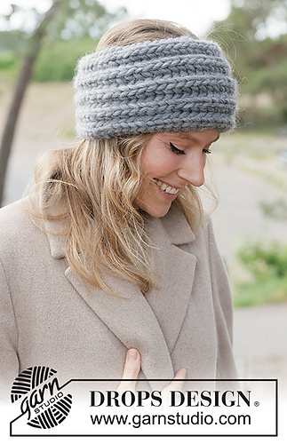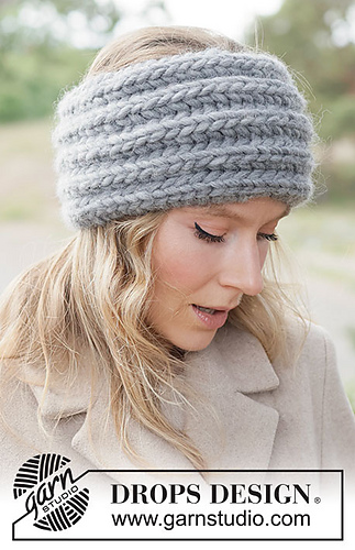 Knitted head band in DROPS Polaris. Piece is worked back and forth in English rib.