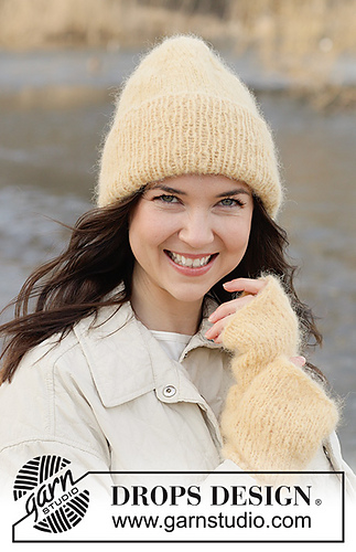 Knitted hat in 1 strand DROPS Melody or 2 strands DROPS Brushed Alpaca Silk. The piece is worked bottom up in stocking stitch and rib. Theme: Easter.