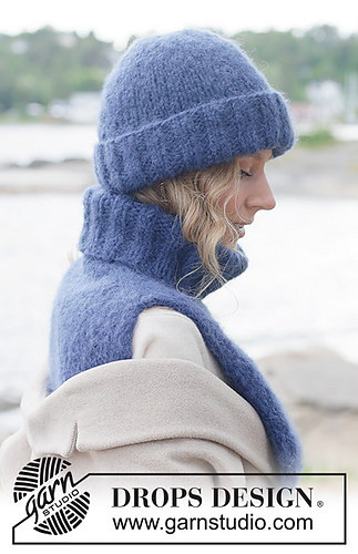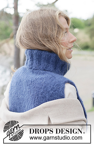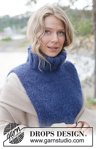 Knitted neck warmer in 2 strands DROPS Melody. Piece is knitted top down with European shoulders, stocking stitch and I-cord.