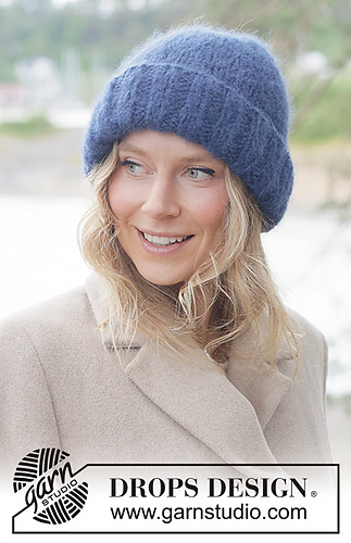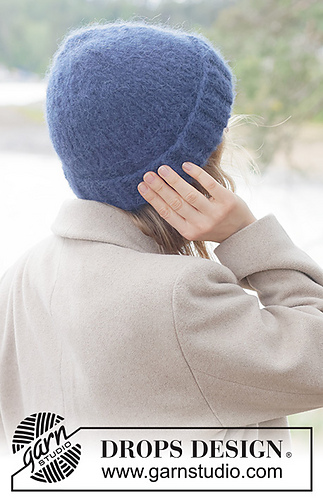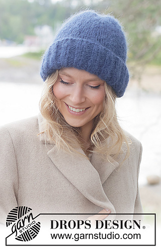 Knitted hat in 2 strands DROPS Melody. The piece is worked bottom up with rib and stocking stitch.