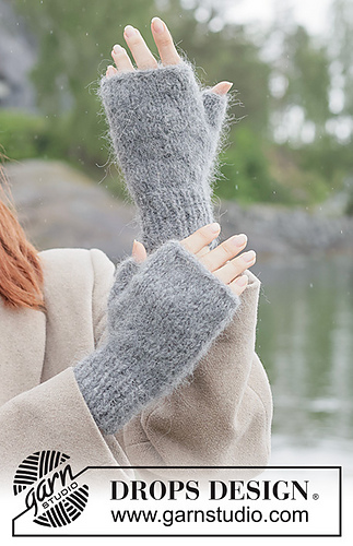 Knitted hat and wrist-warmers in 1 strand DROPS Melody or 2 strands DROPS Brushed Alpaca Silk.