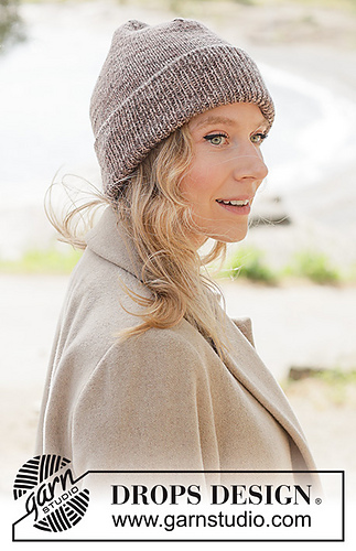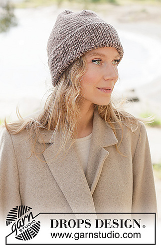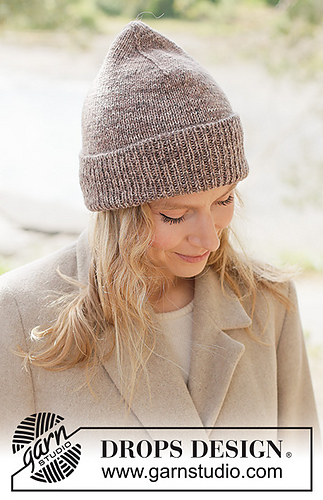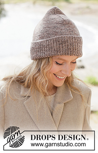 Knitted hat in DROPS Fiesta. Piece is knitted bottom up in stocking stitch and rib with folding edge.