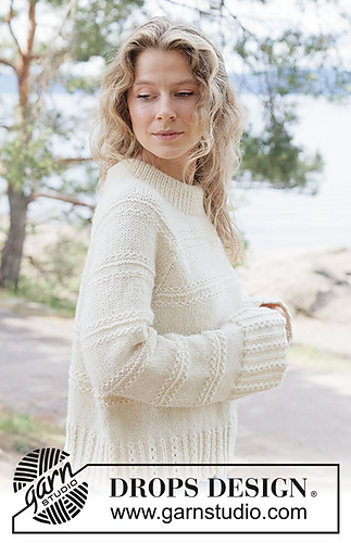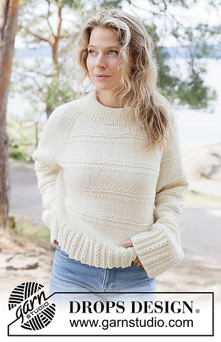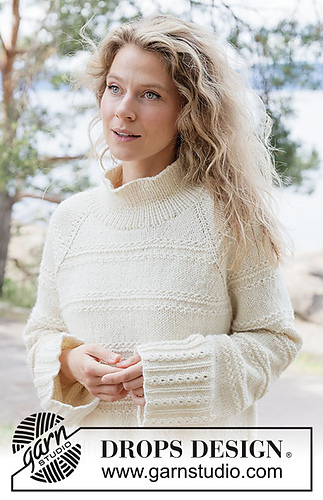 Knitted jumper in DROPS Nepal. Piece is knitted top down with raglan, relief pattern and high collar. Size XS – XXXL.