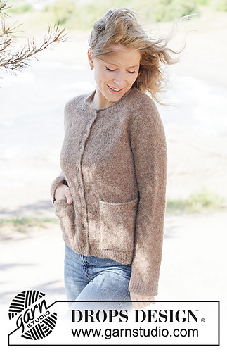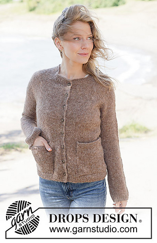 Knitted jacket in DROPS Brushed Alpaca Silk. The piece is worked top down with stocking stitch, raglan, rolled edges, I-cord and pockets. Sizes XS - XXXL.
