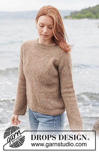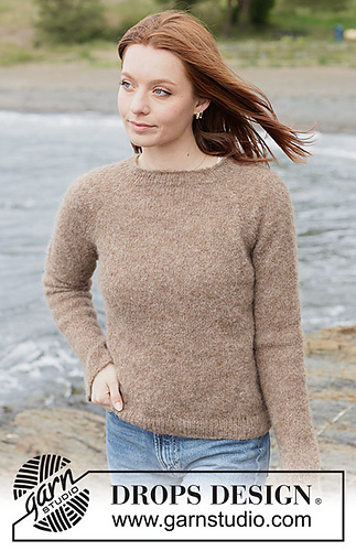 Knitted jumper in DROPS Brushed Alpaca Silk. The piece is worked top down with stocking stitch, raglan and rolled neck-edge. Sizes XS - XXXL.