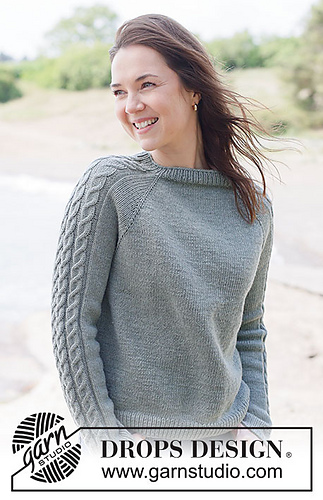 Knitted jumper in DROPS Merino Extra Fine or DROPS Lima. The piece is worked top down in stocking stitch with raglan and cables. Sizes XS - XXXL.