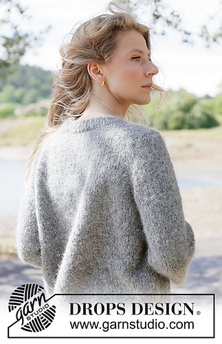 Knitted jacket in 1 strand DROPS Melody or 2 strands DROPS Brushed Alpaca Silk. Piece is knitted top down in stocking stitch with European yoke, rolling edge and i-cord. Size XS – XXXL.