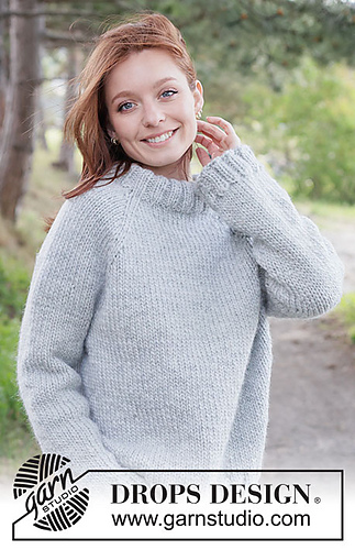 Knitted jumper in DROPS Snow or DROPS Andes. The piece is worked top down with raglan and double neck. Sizes XS - XXXL.