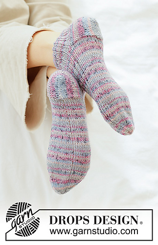 Knitted socks in DROPS Fabel. Piece is knitted top down in stocking stitch and rib. Size 35 to 43