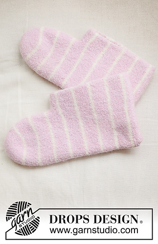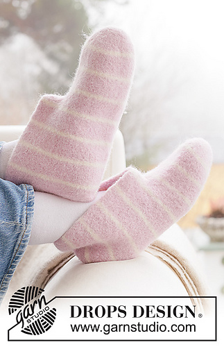 Knitted and felted slippers in DROPS Nepal. The piece is worked back and forth with stripes. Sizes 26-43. Theme: Easter.
