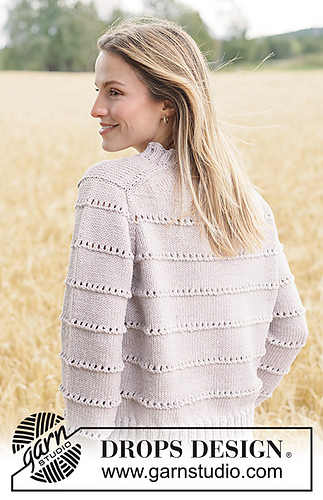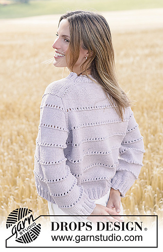 Knitted jumper in DROPS Big Merino. Piece is knitted top down with European yoke and lace pattern. Size XS – XXXL.
