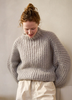 Edle Neutrals und ein seidiger Mohair-Mix lassen das Halbpatentmuster dieses Pullovers wie weichgezeichnet erscheinen. Das Modell hat überschnittene Schultern und wird dreifädig gestrickt. … Lana Grossa/Nera 01