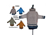 S: chest: 30-34”, 19” long: with collar and sleeves: 1030 yds (collar: 130 yds; sleeves: 350 yds; body: 550 yds)