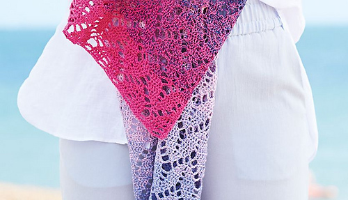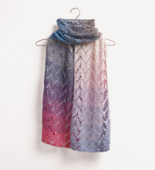Mit einem harmonischem Verlauf von leuchtend bis zart beeindruckt das blau--pinke Häkeltuch im luftigen Zickzackllochmuster. … Lovewool 14