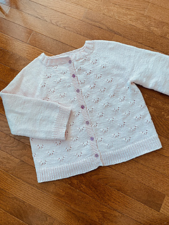 Knitted jacket for children in DROPS Baby Merino. The piece is worked top down with saddle-shoulders, lace pattern and short sleeves. Sizes 3-14 years.