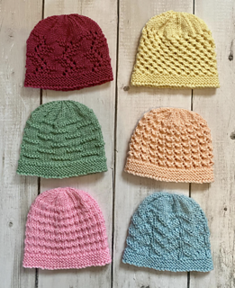 The texture of each hat varies, giving you 6 lovely options to choose from, adding variety and interest to your knitting.
