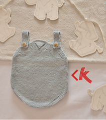 This baby romper is made with a back piece, and a front piece. After the pieces are joined, two straps are made with buttonholes.