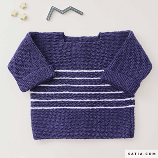 This newborn sweater pattern is knitted in one piece with Concept Extrafine 365, a light, soft blend of cotton and extrafine merino. Garter stitch adds comfort, and the fine contrast stripes give a classic touch. The back button opening makes dressing easy.