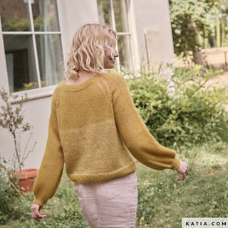 A detail that makes a difference: the body, knitted holding a strand each of Concept Silky Mohair and Concept Combine & Pailletes, makes this top-down sweater with a circular yoke and slightly puffed sleeves light. Concept Silky Mohair provides lightweight warmth and a beautiful drape.