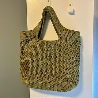Yarn Held Double: To increase strength and durability, this entire bag is worked with yarn held double, meaning two strands of yarn are held together and used as if they were one. Note that two worsted weight strands held double is approximately equivalent to 1 strand of bulky weight yarn.